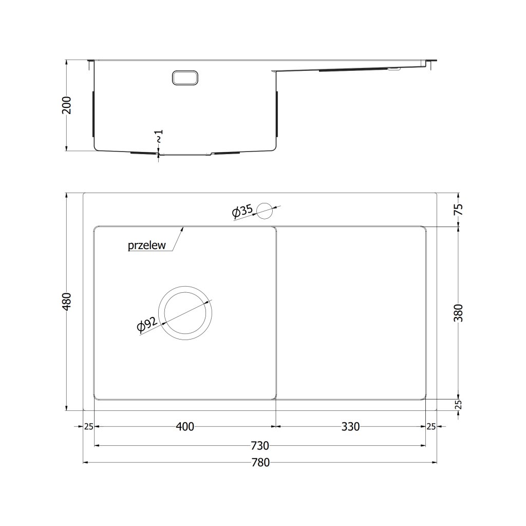 - Spôsob montáže: zapustený do dosky zhora, pravý variant