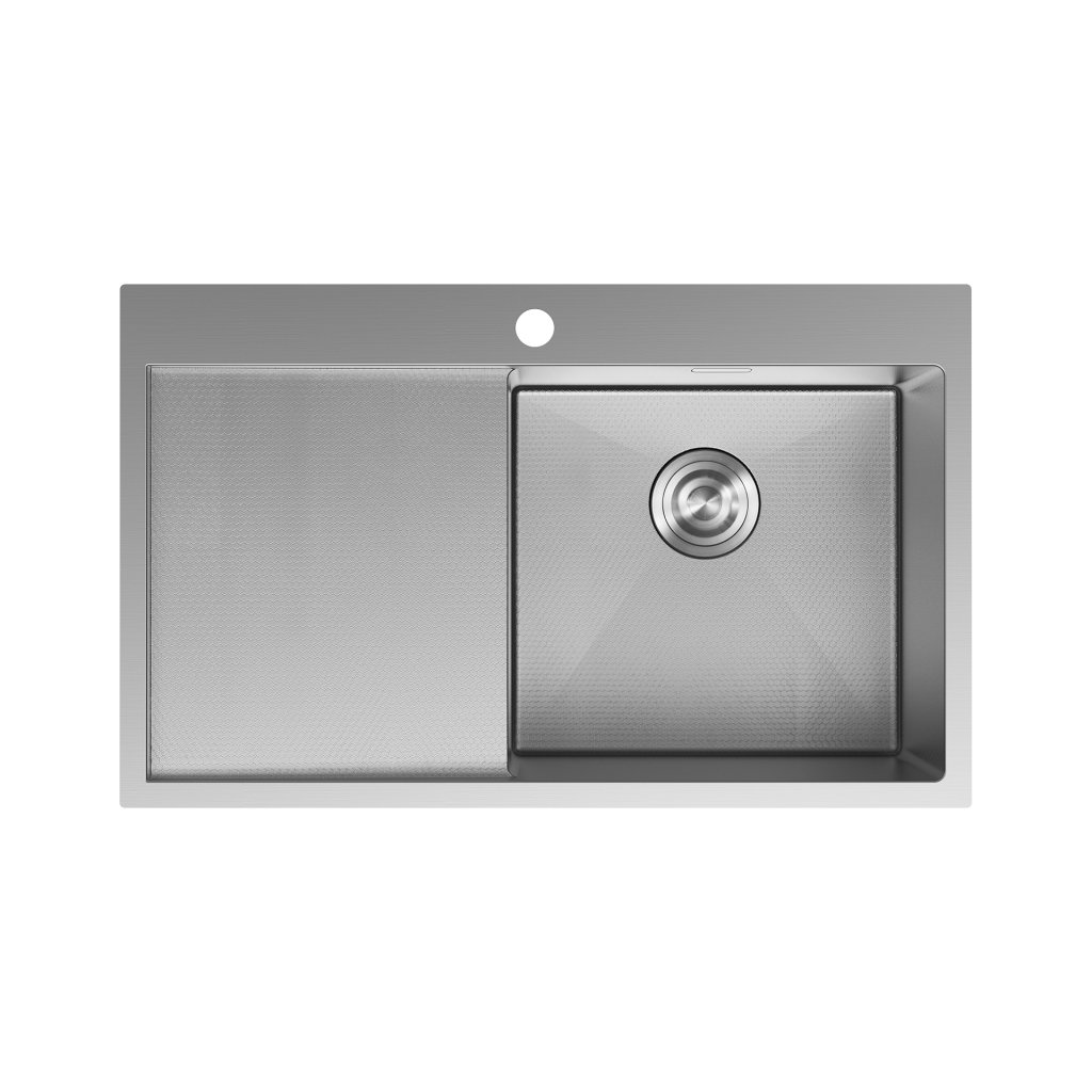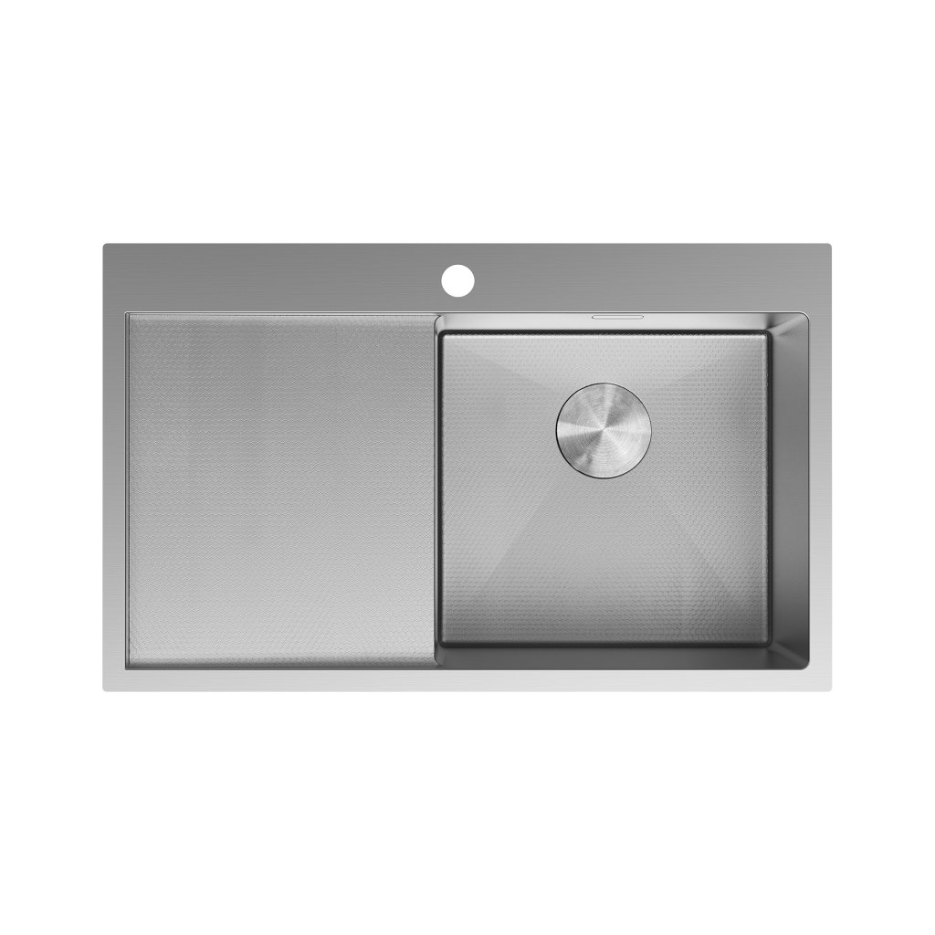 Mexen Exar, 1-komorový nerezový drez s odkvapkávačom, pravý, 780 x 480 mm, brúsena oceľ, vzor voština, 6434781010P-01HC
