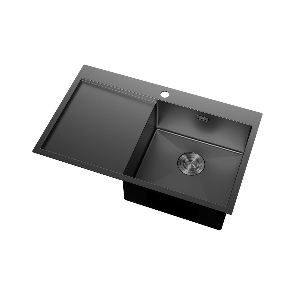 Mexen Exar, 1-komorový nerezový drez s odkvapkávačom, pravý, 780 x 480 mm, čierna, 6434781010P-70