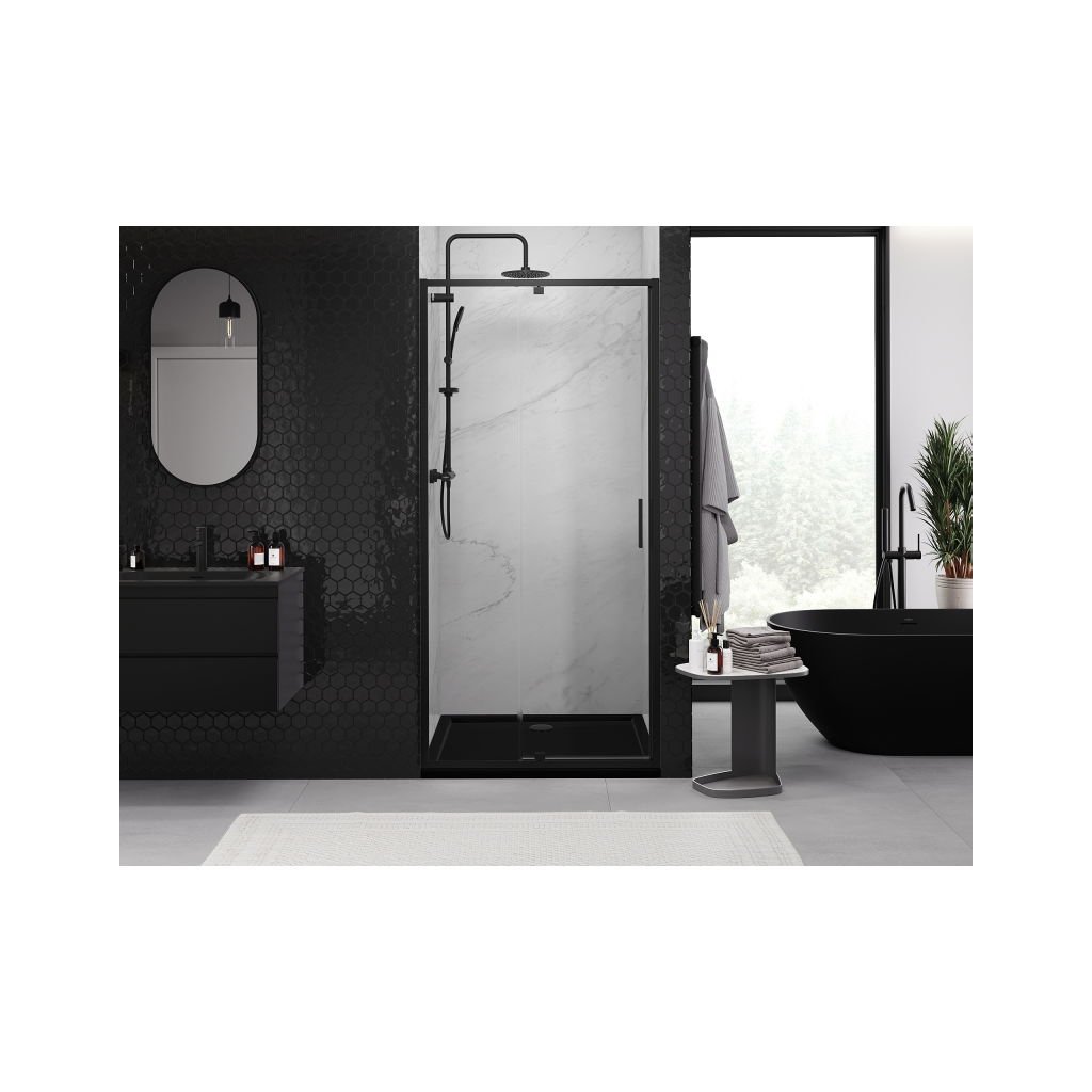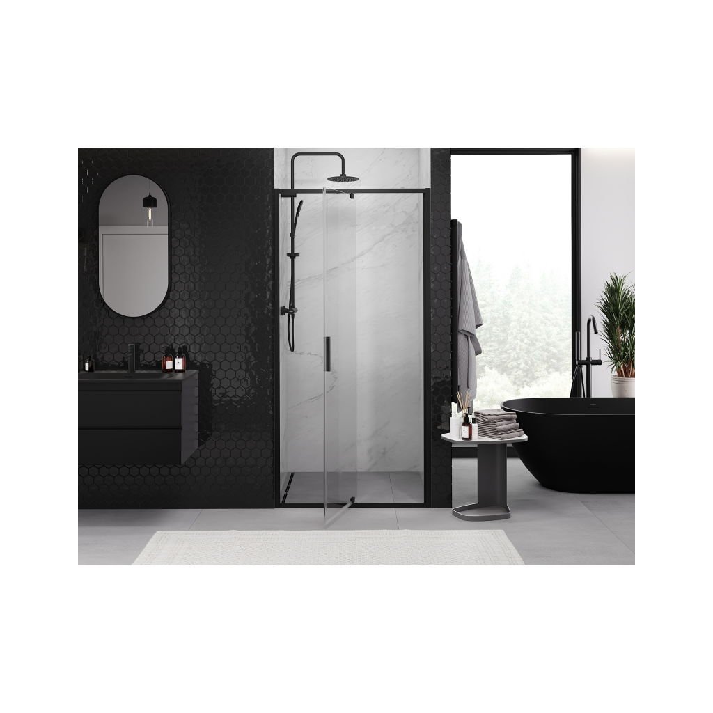 Mexen Exo, 1-krídlové dvere do otvoru 120x200 cm, 6mm číre sklo, čierny profil, 819-120-000-70-00