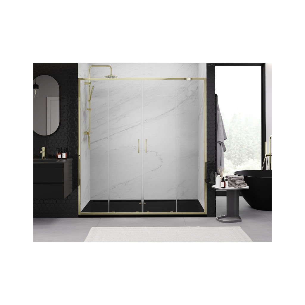 Mexen Exo, dvojité posuvné sprchové dvere 200 cm, číre sklo, zlatá, 8152-200-000-50-00