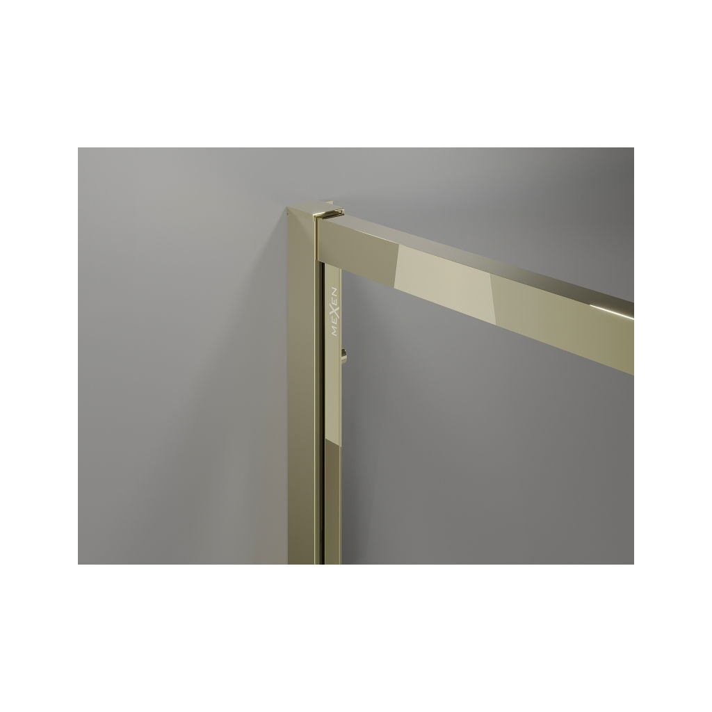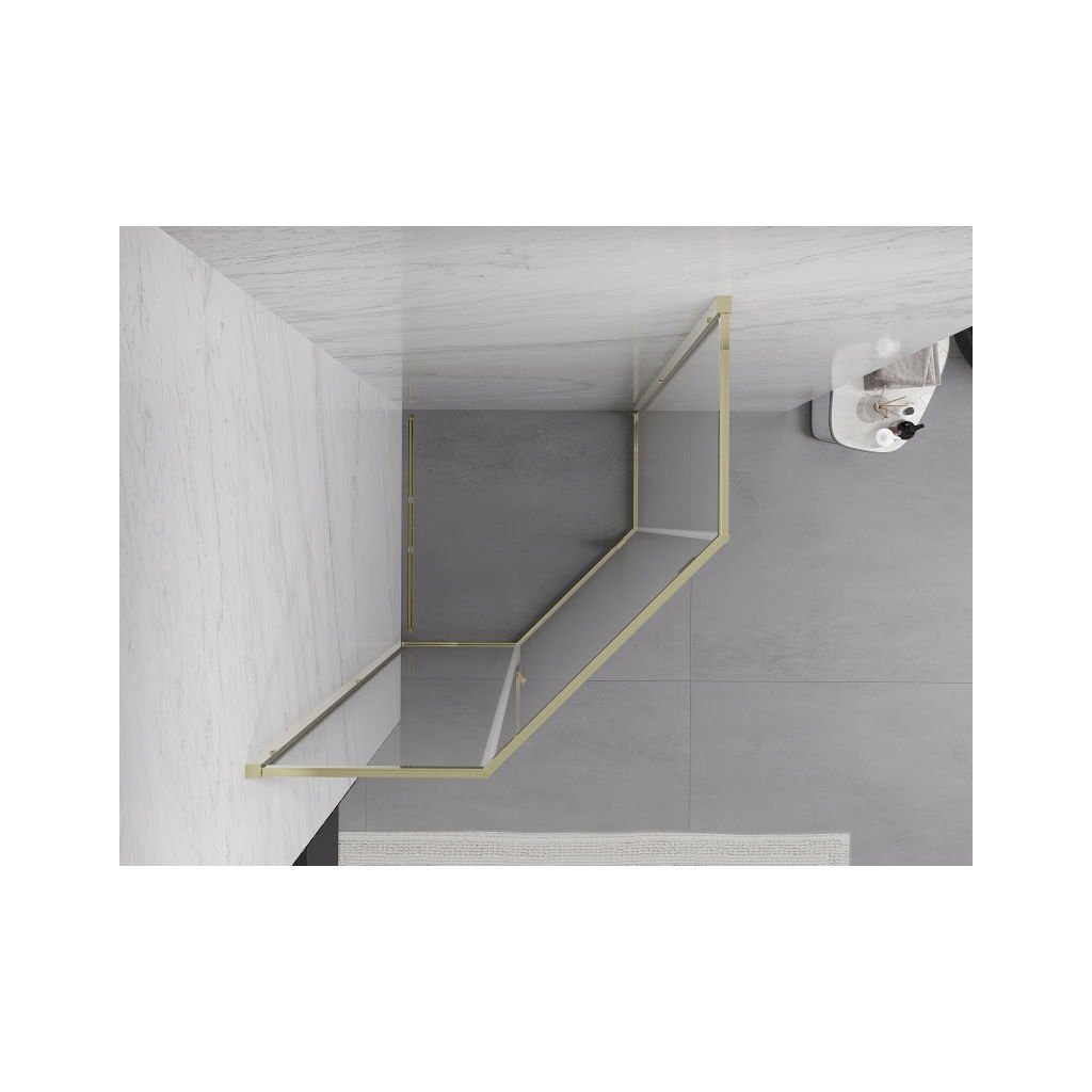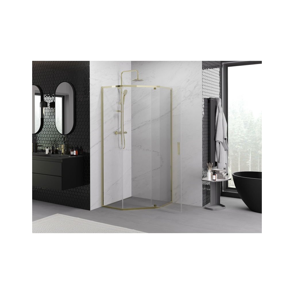 Mexen Exo, päťuholníkový výklopný sprchový kút 90 x 90 cm, číre sklo, zlatá, 812-090-090-50-00