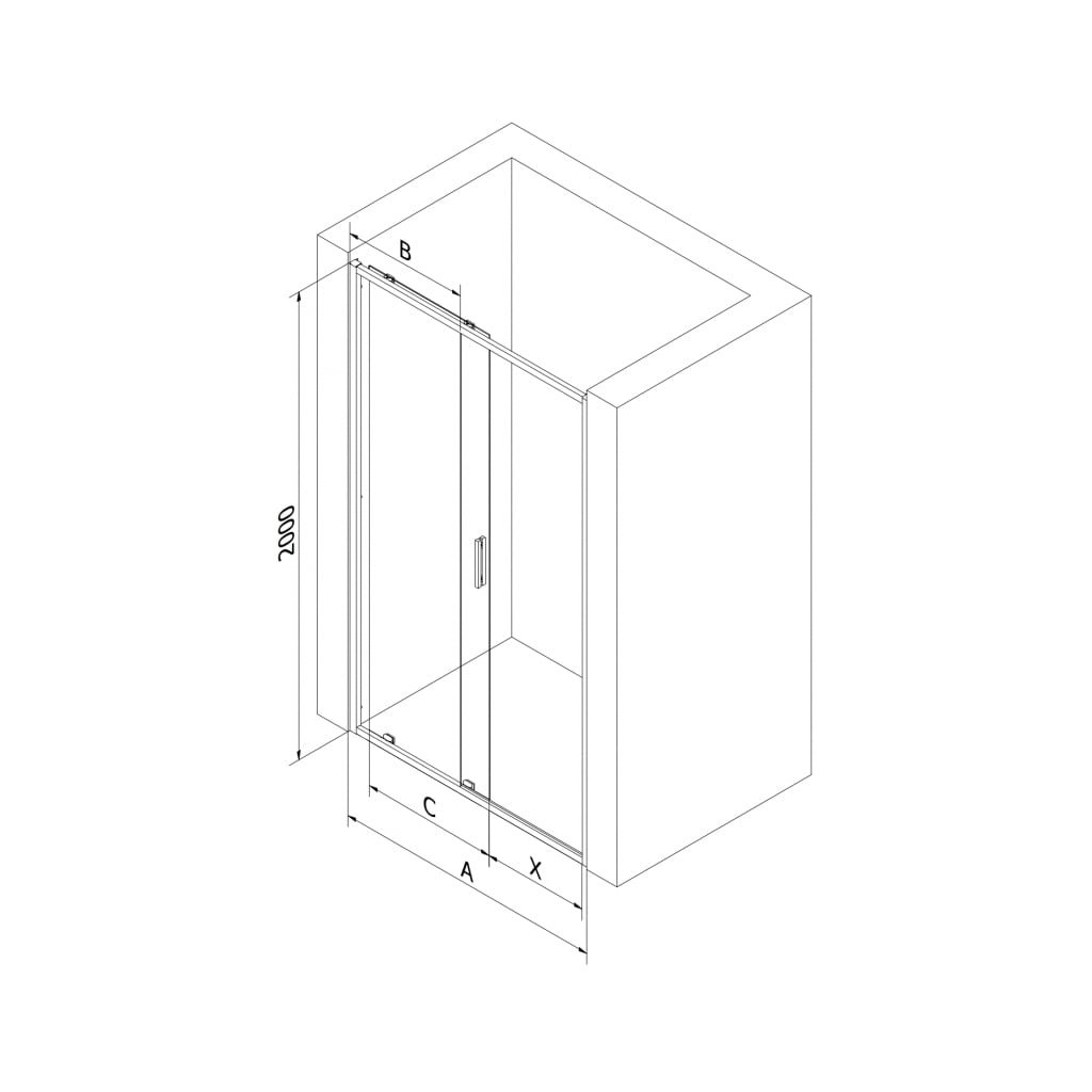 Mexen Exo, posuvné dvere do otvoru 120x200 cm, 6mm číre sklo, čierny profil, 8151-120-000-70-00