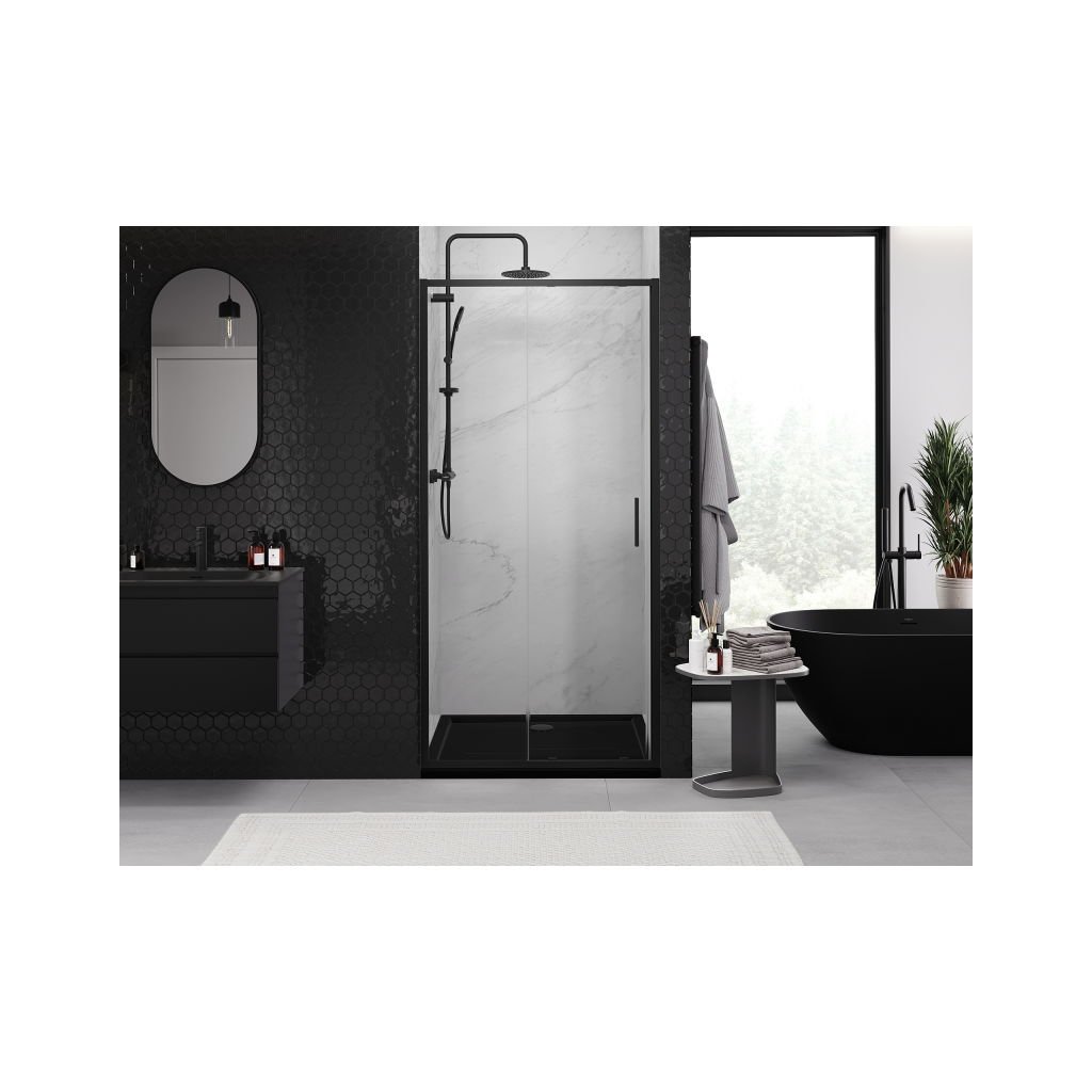 Mexen Exo, posuvné dvere do otvoru 125x200 cm, 6mm číre sklo, čierny profil, 8151-125-000-70-00