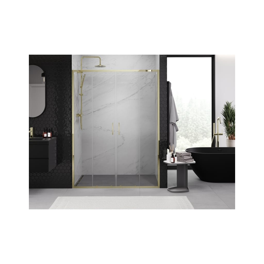 Mexen Exo, posuvné dvojité sprchové dvere 140 cm, číre sklo, zlatá, 8152-140-000-50-00