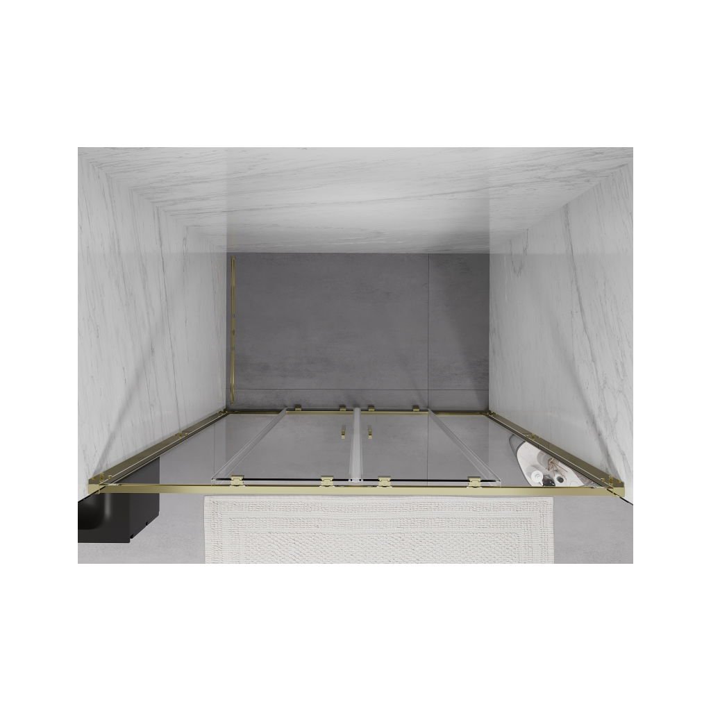 Mexen Exo, posuvné dvojité sprchové dvere 150 cm, číre sklo, zlatá, 8152-150-000-50-00