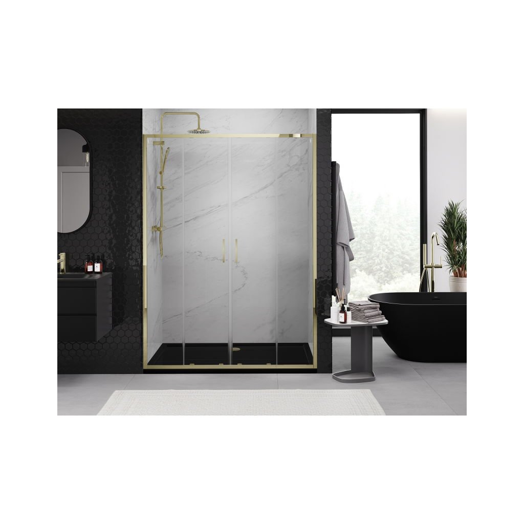 Mexen Exo, posuvné dvojité sprchové dvere 160 cm, číre sklo, zlatá, 8152-160-000-50-00