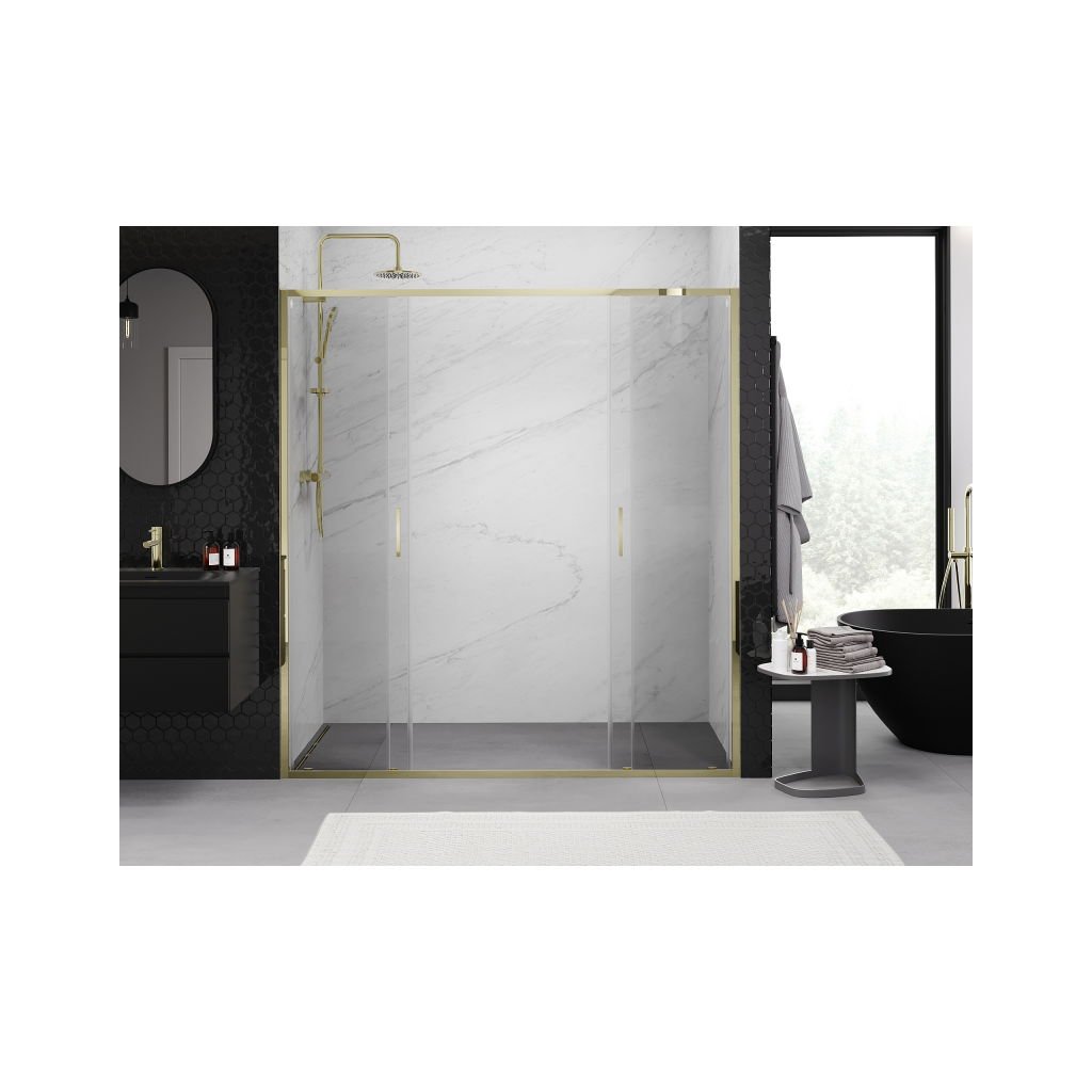 Mexen Exo, posuvné dvojité sprchové dvere 170 cm, číre sklo, zlatá, 8152-170-000-50-00