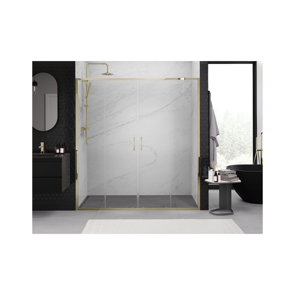 Mexen Exo, posuvné dvojité sprchové dvere 180 cm, číre sklo, zlatá, 8152-180-000-50-00