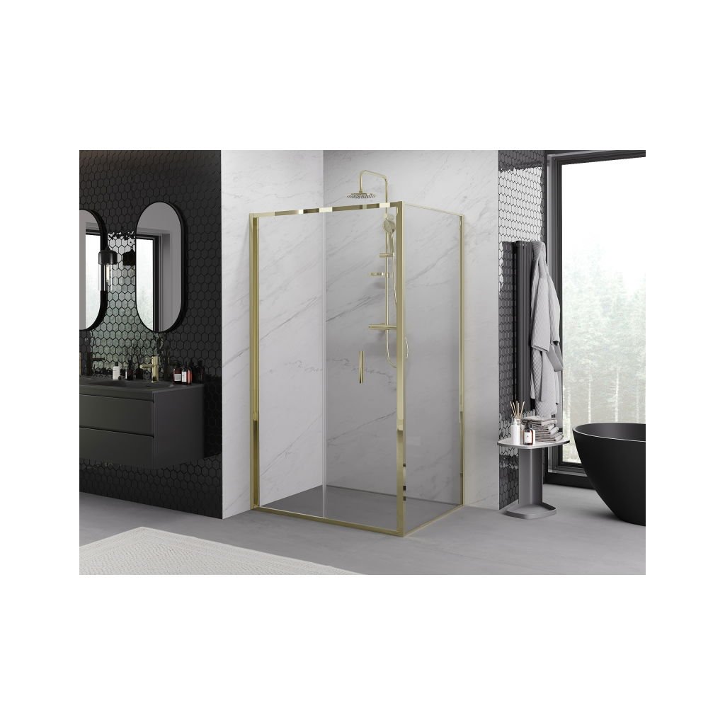 Mexen Exo, skladací sprchový kút 90 x 100 cm, číre sklo, zlatá, 816-090-100-50-00