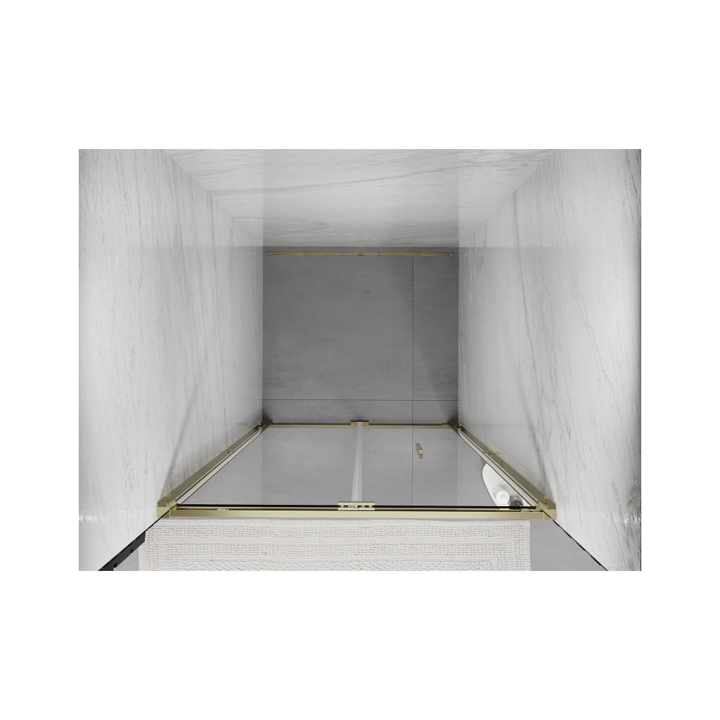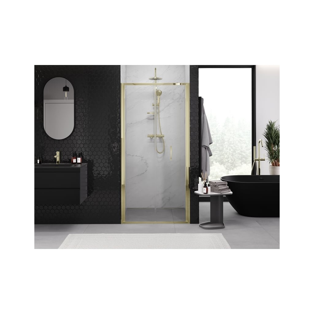 Mexen Exo, skladacie sprchové dvere 85 cm, číre sklo, zlatá, 816-085-000-50-00