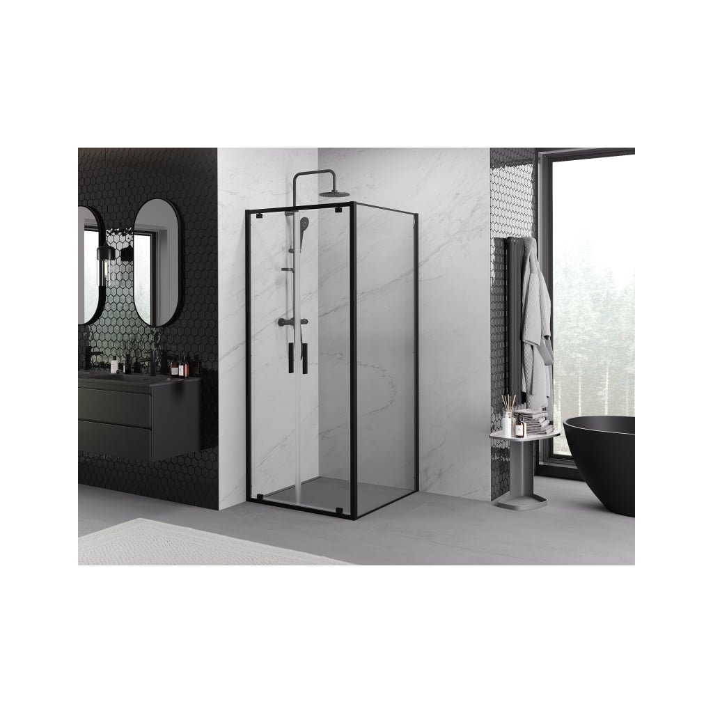 Mexen Exo, sprchovací kút s krídlovými dverami 100 x 100 cm, 6mm číre sklo, čierny profil, 8182-100-100-70-00