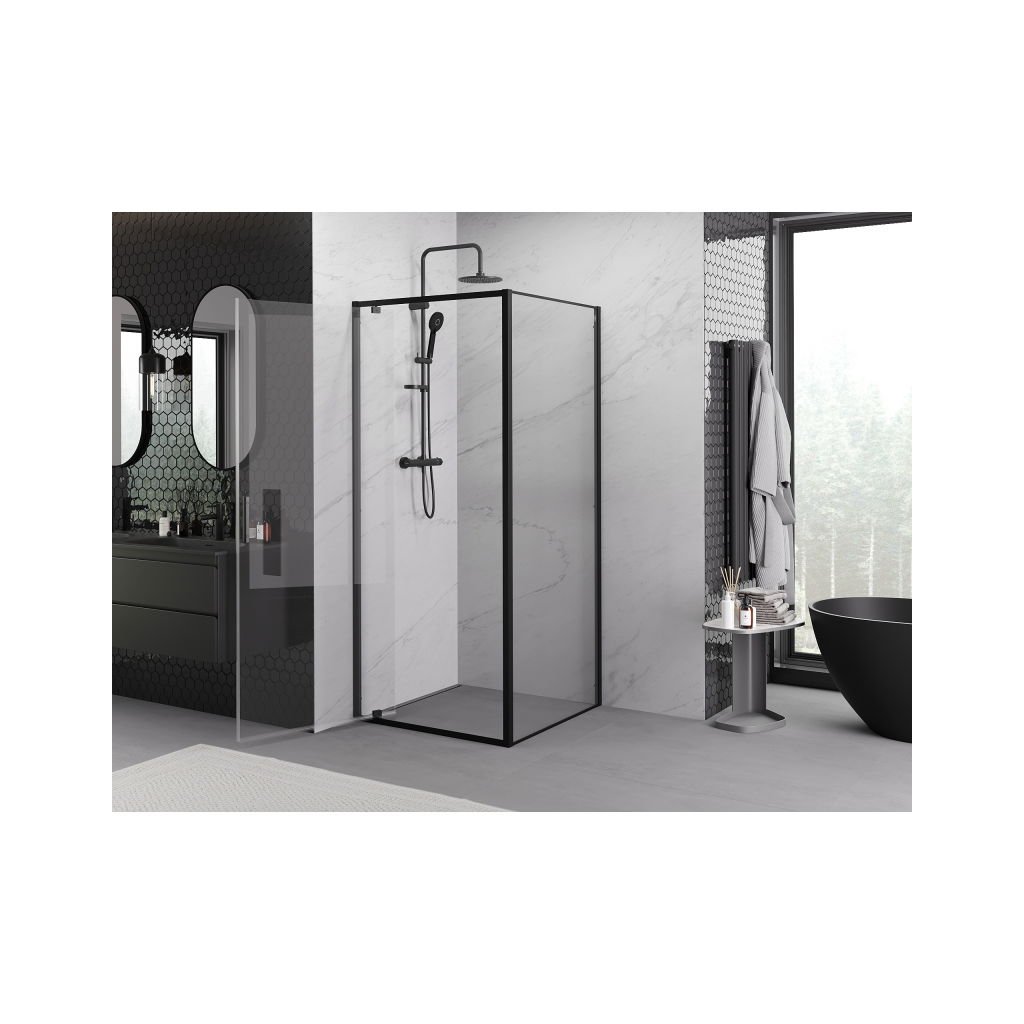 Mexen Exo, sprchovací kút s krídlovými dverami 75 x 75 cm, 6mm číre sklo, čierny profil, 8181-075-075-70-00