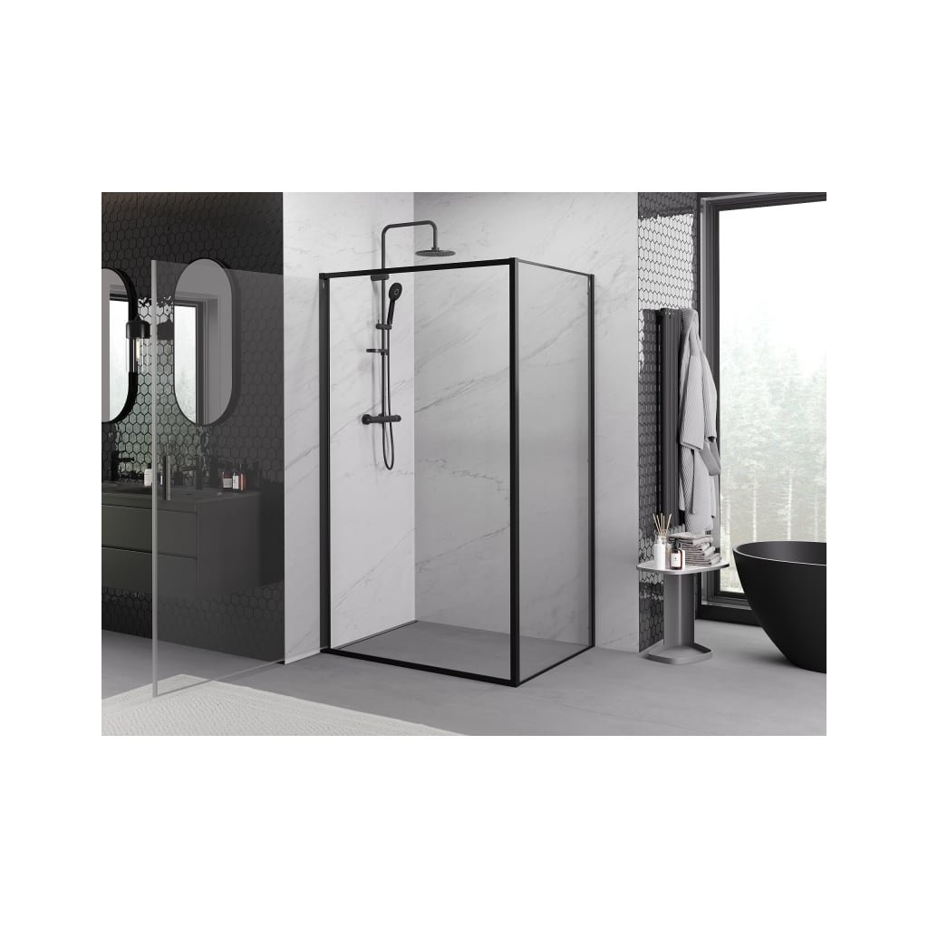 Mexen Exo, sprchovací kút s krídlovými dverami 90 x 85 cm, 6mm číre sklo, čierny profil, 817-090-085-70-00