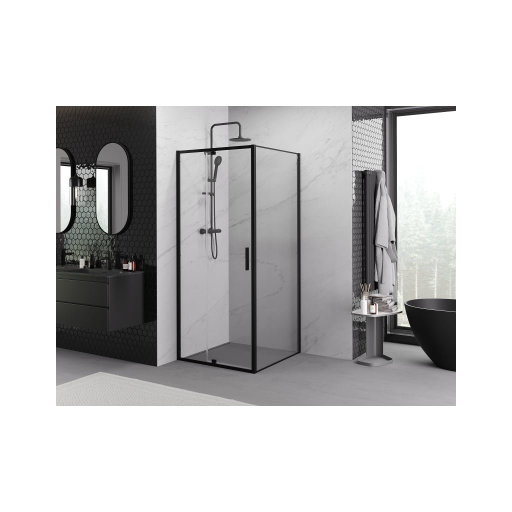 Mexen Exo, sprchovací kút s krídlovými dverami 90 x 90 cm, 6mm číre sklo, čierny profil, 819-090-090-70-00