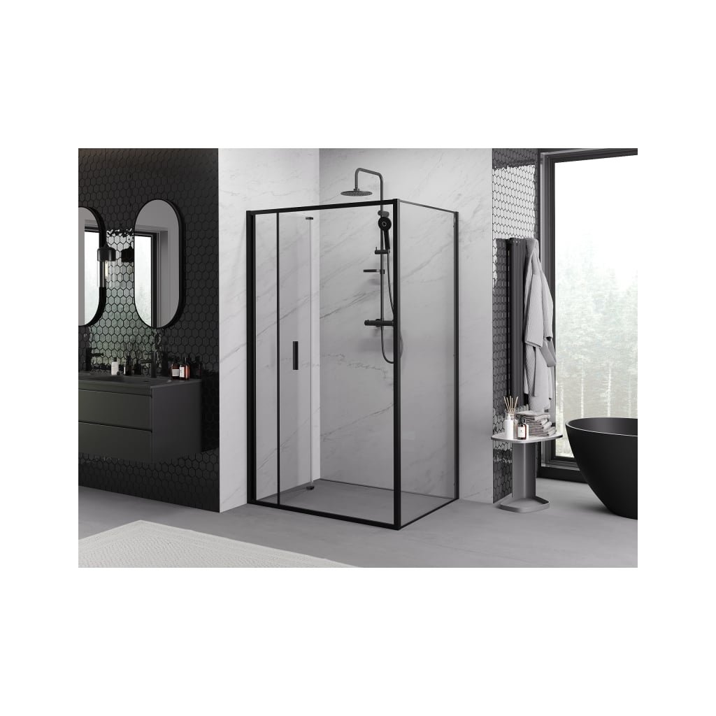 Mexen Exo, sprchovací kút so skladacími dverami 100 x 75 cm, 6mm číre sklo, čierny profil, 816-100-075-70-00