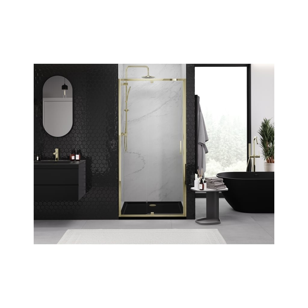 Mexen Exo, výklopné sprchové dvere 120 cm, číre sklo, zlatá, 819-120-000-50-00