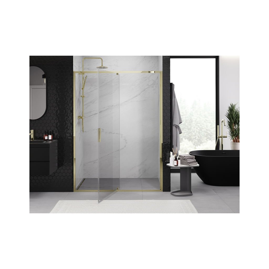 Mexen Exo, výklopné sprchové dvere 135 cm, číre sklo, zlatá, 819-135-000-50-00
