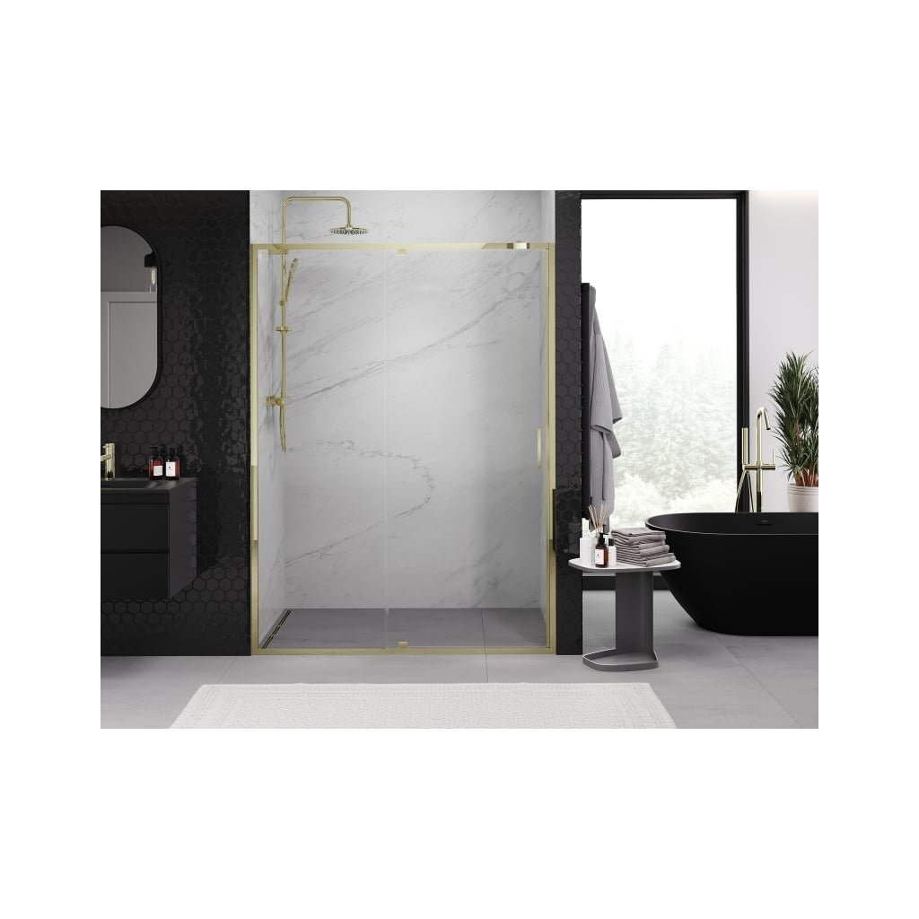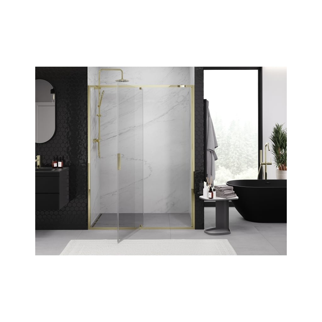 Mexen Exo, výklopné sprchové dvere 140 cm, číre sklo, zlatá, 819-140-000-50-00