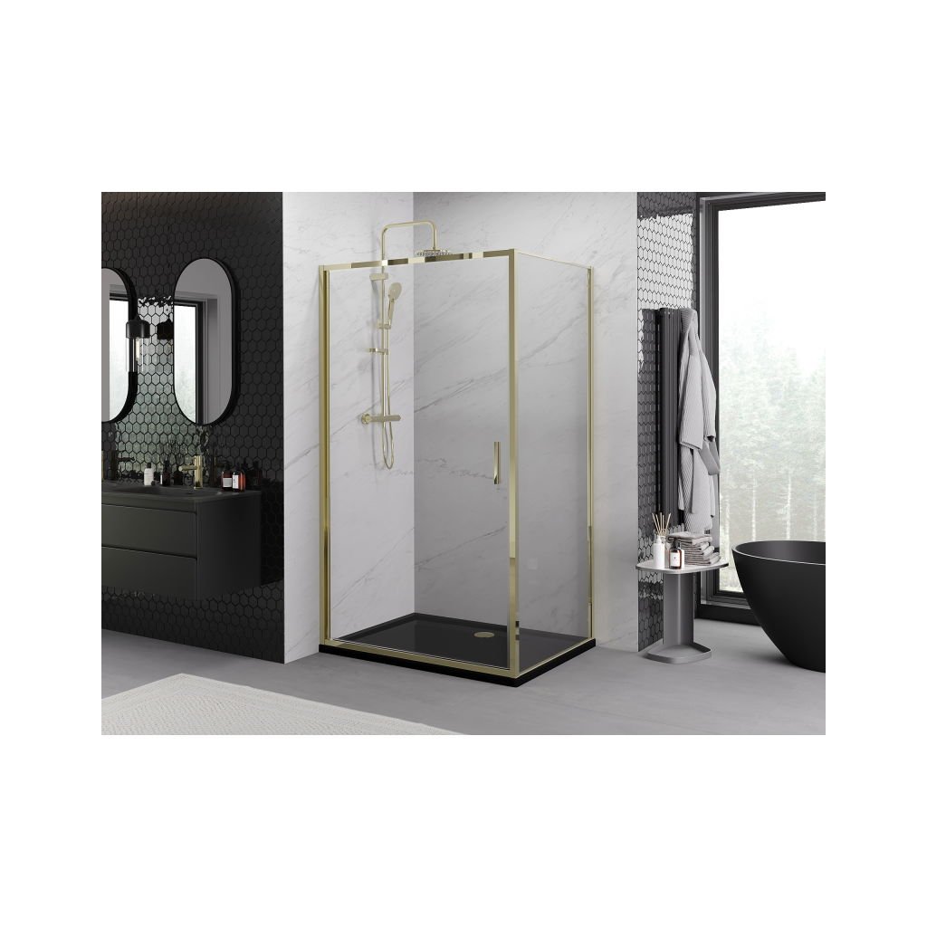 Mexen Exo, výklopný sprchový kút 75 x 70 cm, číre sklo, zlatá, 817-075-070-50-00