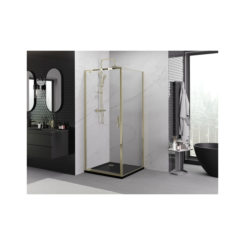 Mexen Exo, výklopný sprchový kút 85 x 85 cm, číre sklo, zlatá, 8181-085-085-50-00