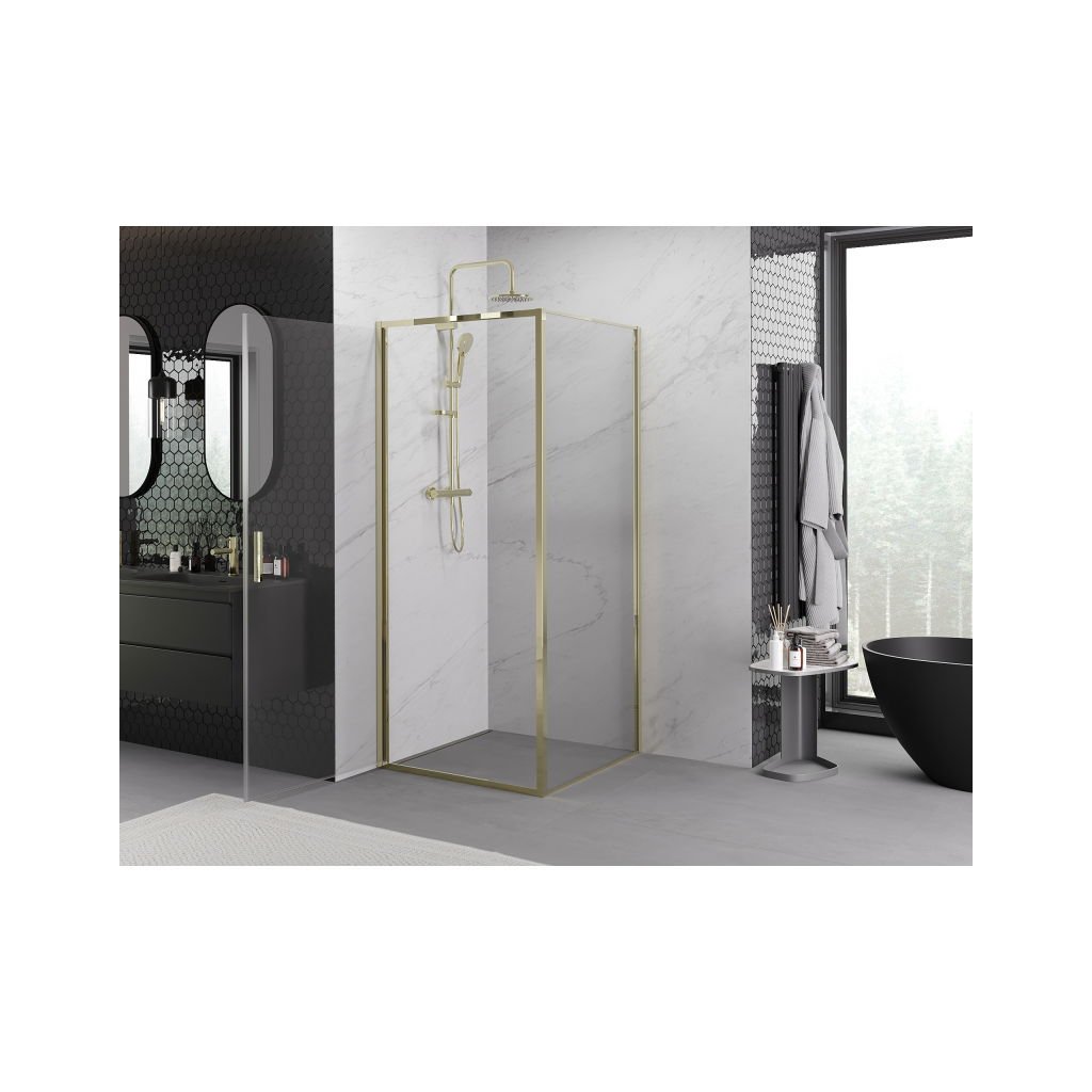 Mexen Exo, výklopný sprchový kút 95 x 95 cm, číre sklo, zlatá, 817-095-095-50-00