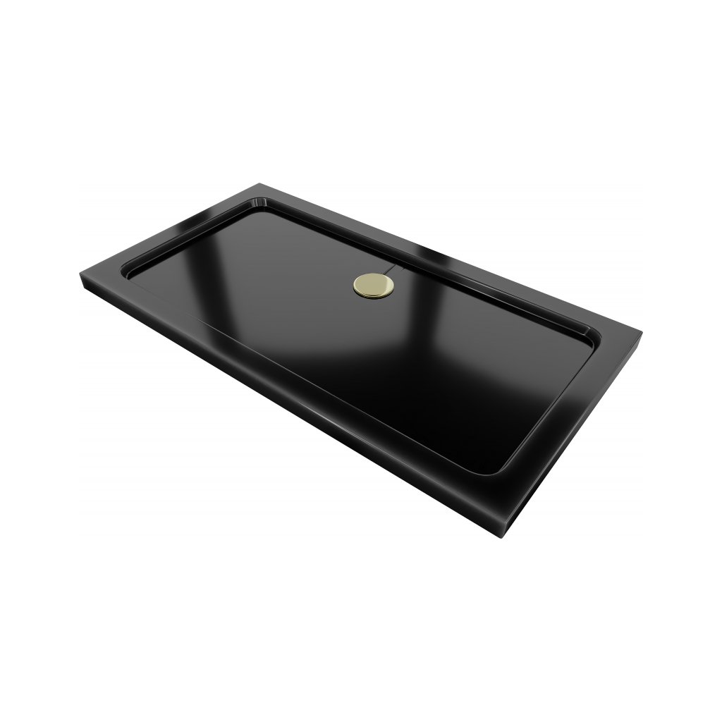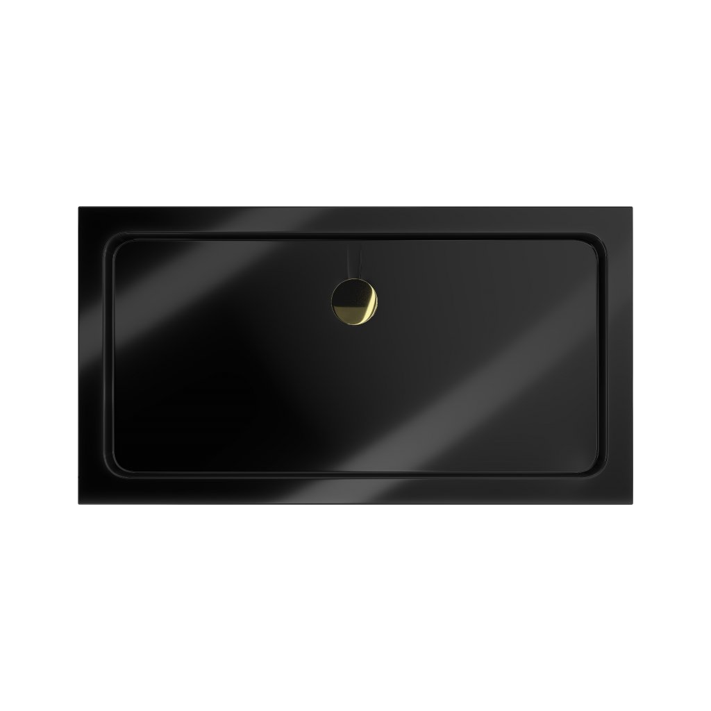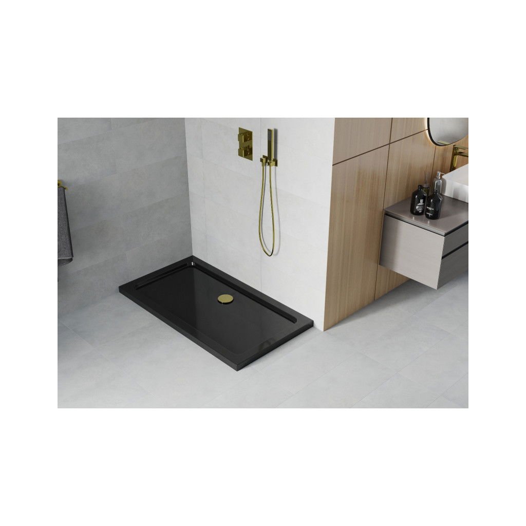 Mexen Flat, akrylátová sprchová vanička 130x70x5 cm SLIM, čierna, zlatý sifón, 40707013G