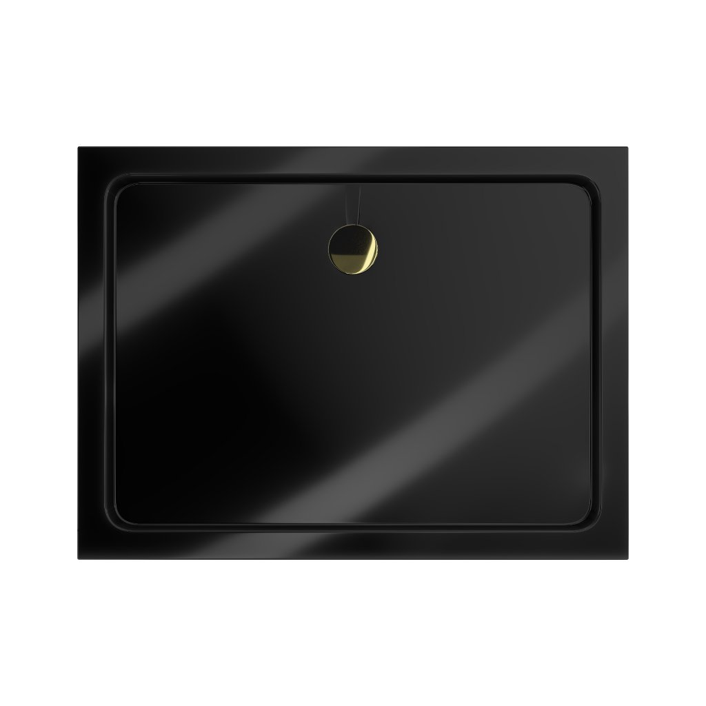 Mexen Flat, akrylátová sprchová vanička 130x80x5 cm SLIM, čierna, zlatý sifón, 40708013G
