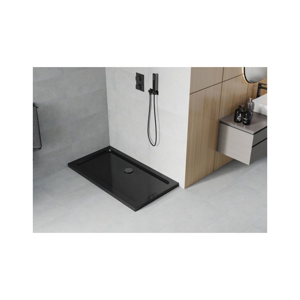 Mexen Flat, akrylátová sprchová vanička 140x70x5 cm SLIM, čierna, čierny sifón, 40707014B