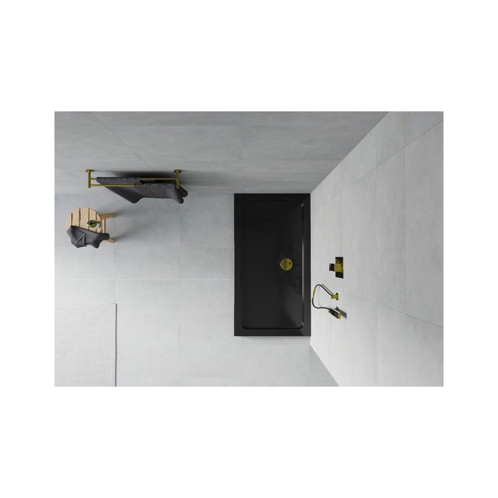 Mexen Flat, akrylátová sprchová vanička 140x70x5 cm SLIM, čierna, zlatý sifón, 40707014G