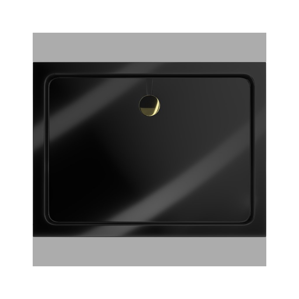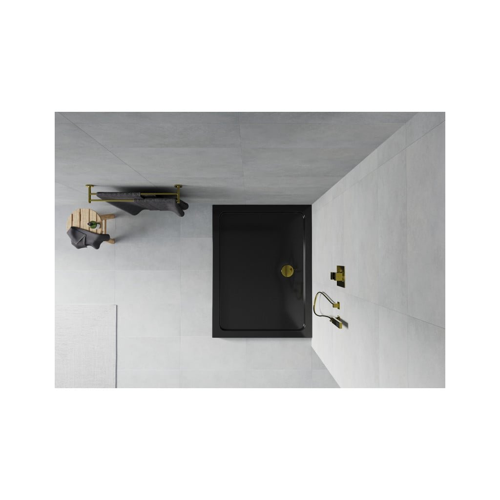 Mexen Flat, akrylátová sprchová vanička 90x80x5 cm SLIM, čierna, zlatý sifón, 40708090G
