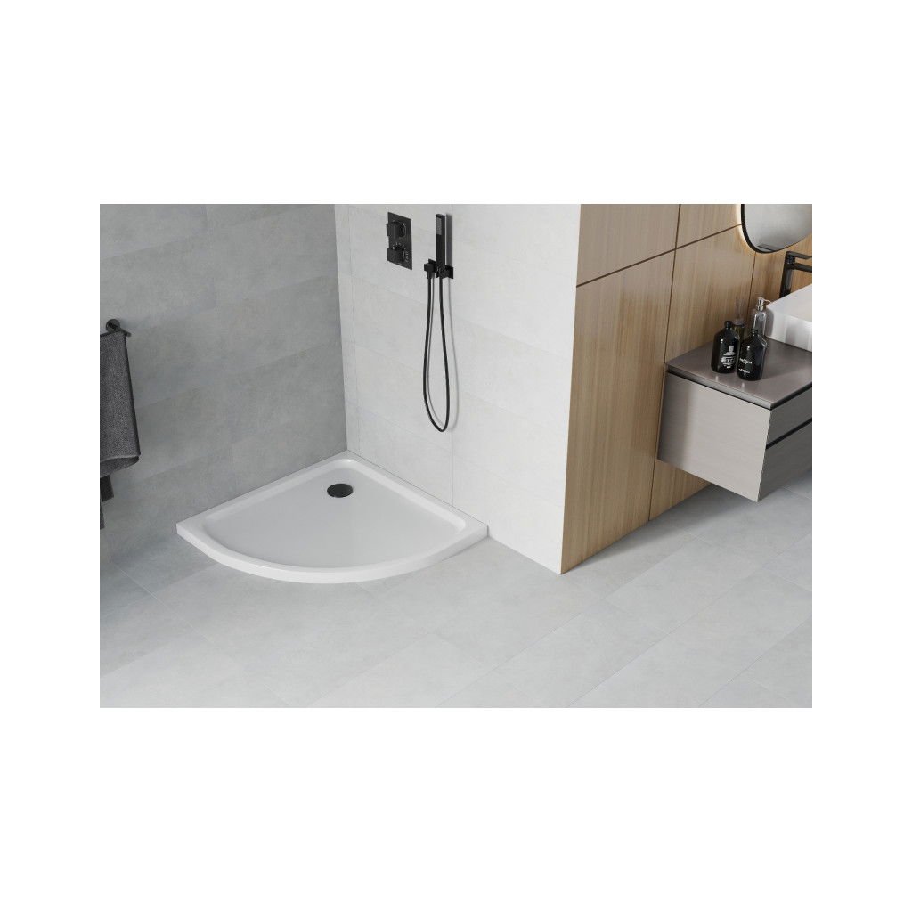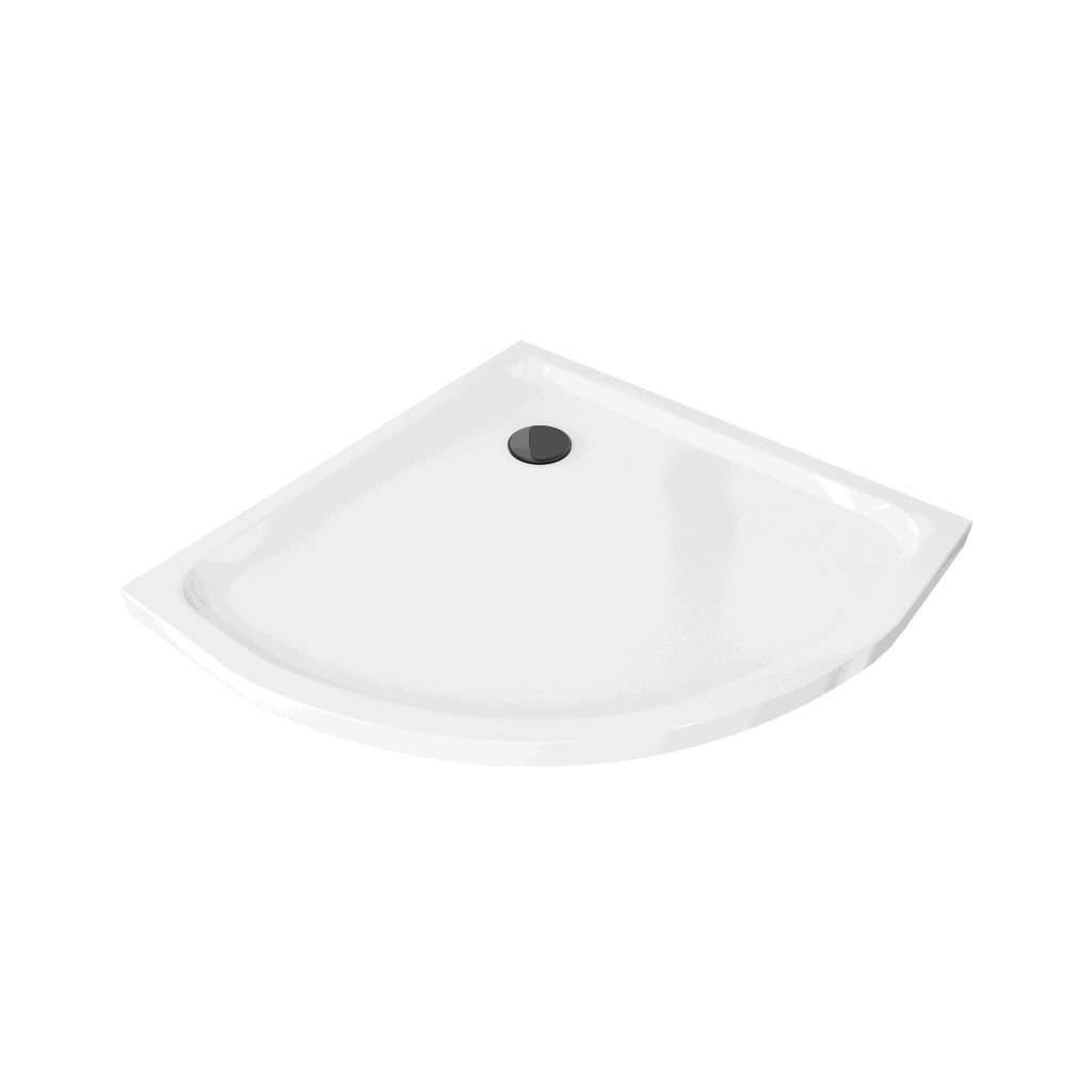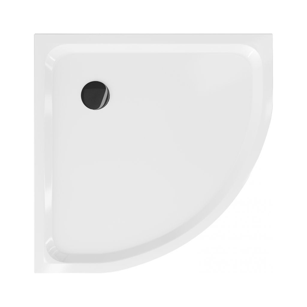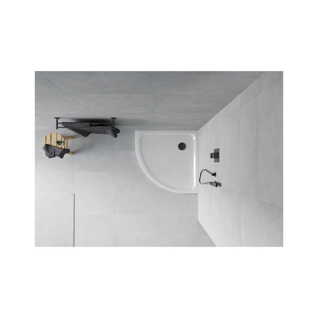 Mexen Flat, štvrťkruhová akrylátová sprchová vanička 100x100x5 cm SLIM, biela, čierny sifón, 41101010B