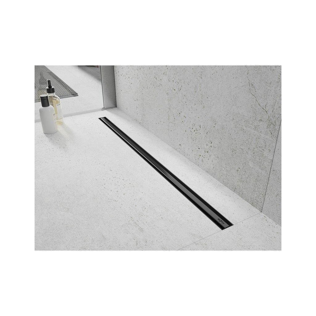 MEXEN Flat nerezový sprchový žľab s rotačným 360° sifónom 180 cm, vzor SLIM, čierna matná, 1741180