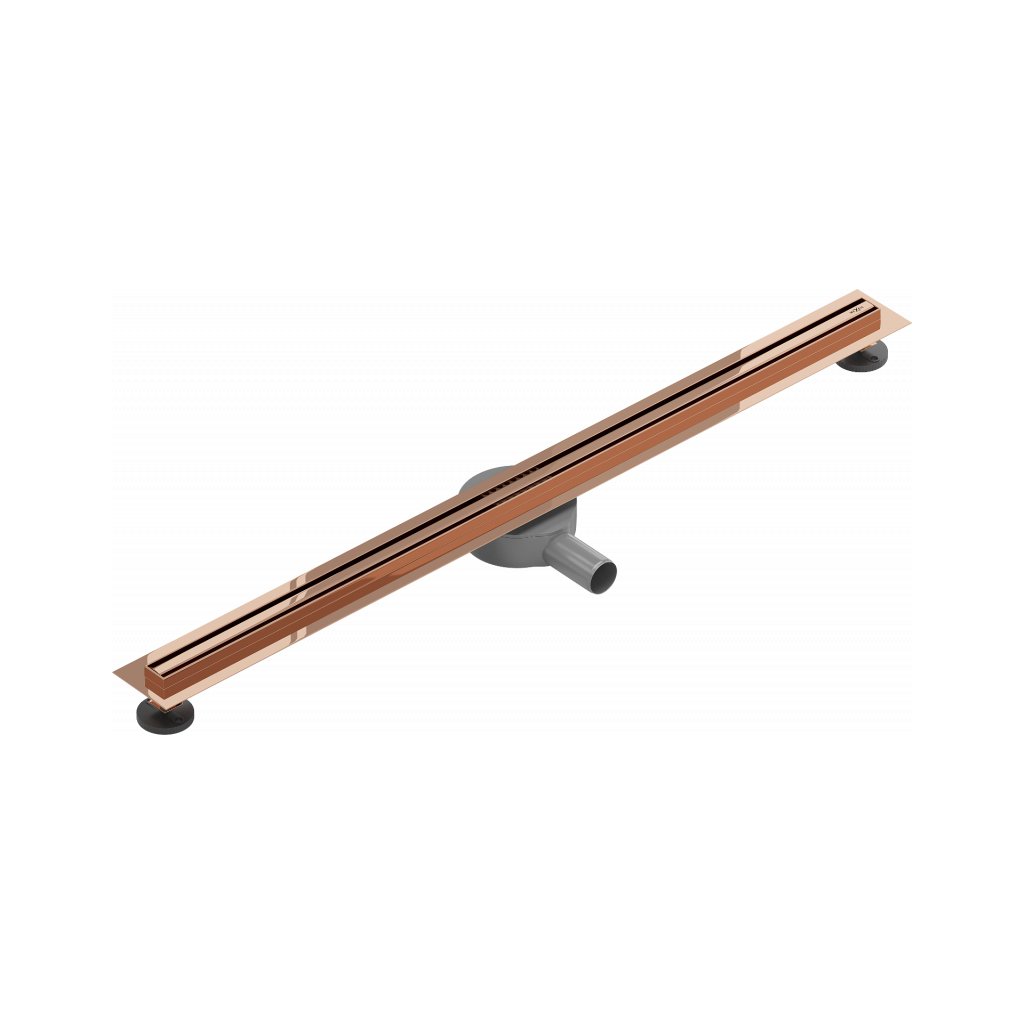 MEXEN Flat nerezový sprchový žľab s rotačným 360° sifónom 90 cm, vzor SLIM, ružovo-zlatá, 1641090