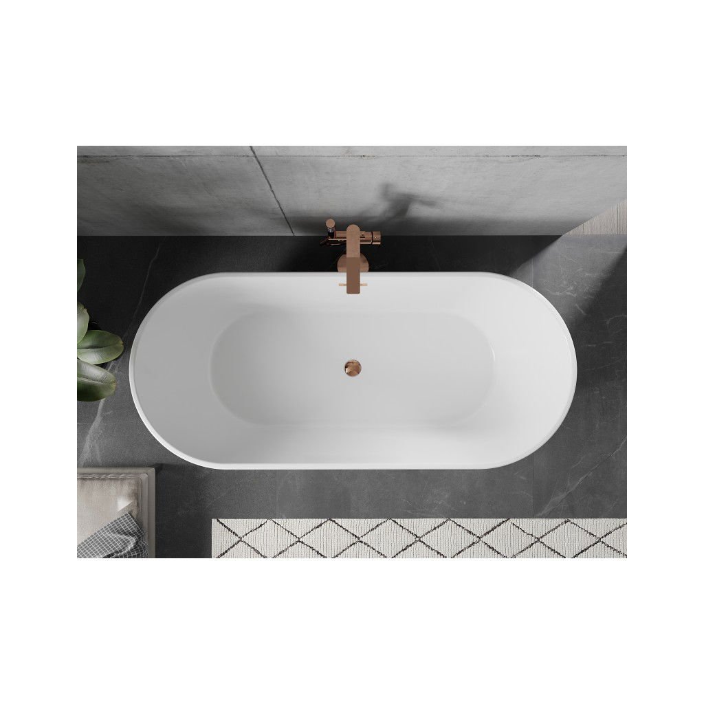 Mexen Flavia, voľne stojaca vaňa 150 x 75 cm, biela-čierna, ružové zlato prepad, 54031507575-60