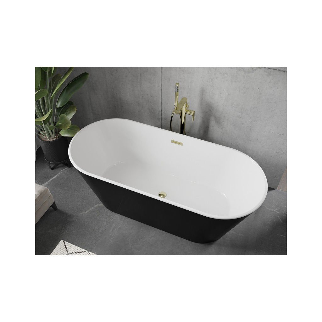 Mexen Flavia, voľne stojaca vaňa 150 x 75 cm, biela-čierna, zlatý lesklý prepad, 54031507575-50