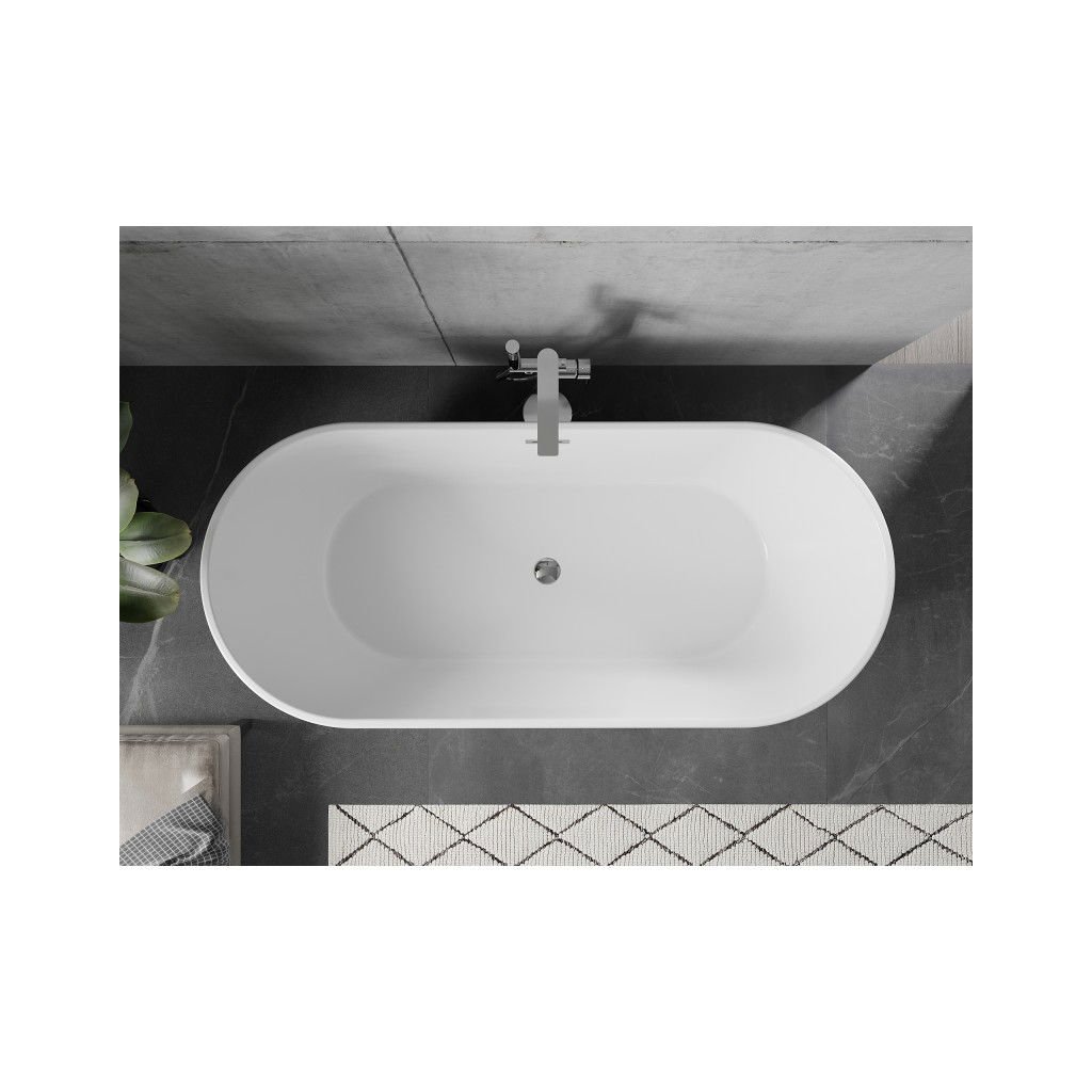 Mexen Flavia, voľne stojaca vaňa 160 x 75 cm, biela, chrómový prepad, 54031608000-01