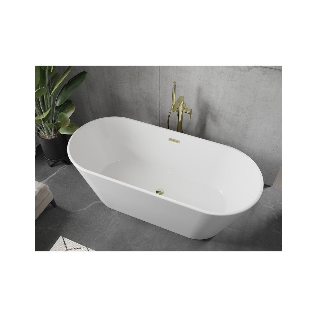 Mexen Flavia, voľne stojaca vaňa 160 x 75 cm, biela, zlatý lesklý prepad, 54031608000-50