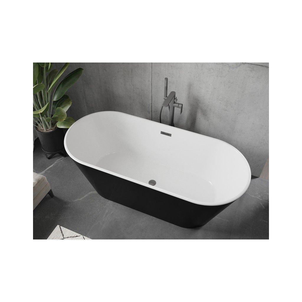 Mexen Flavia, voľne stojaca vaňa 160 x 75 cm, biela-čierna, brúsený grafit prepad, 54031608075-95