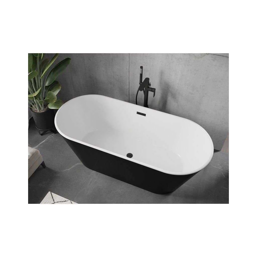 Mexen Flavia, voľne stojaca vaňa 160 x 75 cm, biela-čierna, čierny matný prepad, 54031608075-70