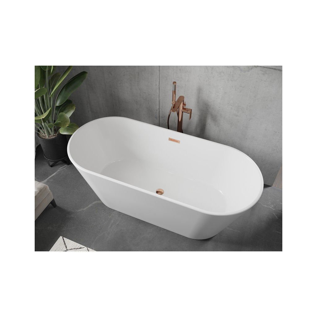 Mexen Flavia, voľne stojaca vaňa 170 x 75 cm, biela, ružové zlato prepad, 54031708000-60