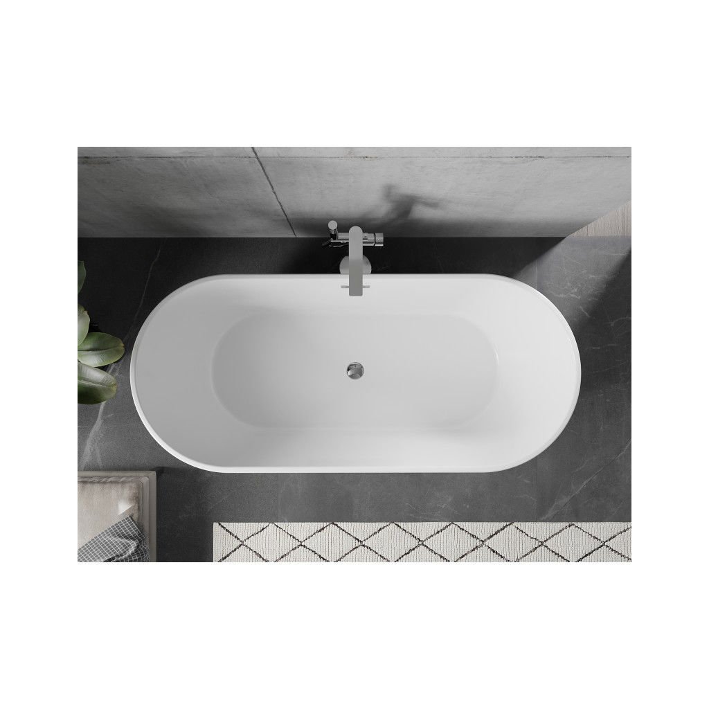 Mexen Flavia, voľne stojaca vaňa 170 x 75 cm, biela-čierna, chrómový prepad, 54031708075-01