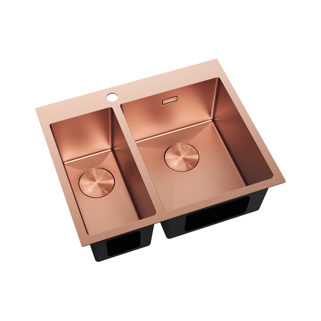 Mexen Flexo, 1.5-komorový nerezový drez 610 x 510 mm, brúsená meď, 6446611500-65