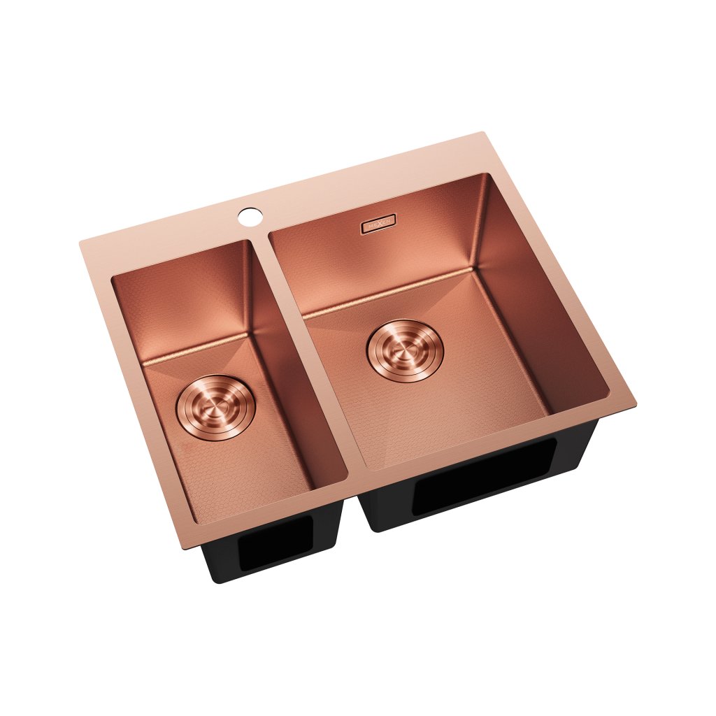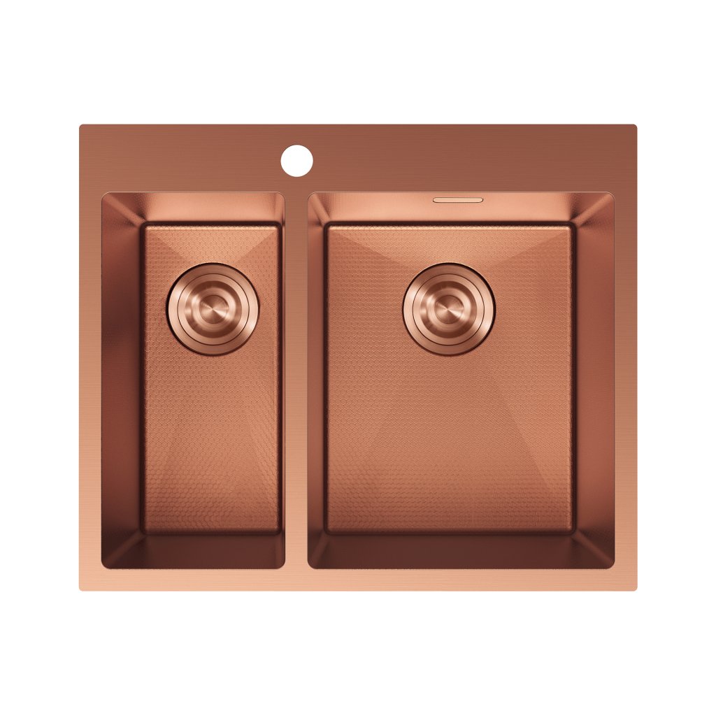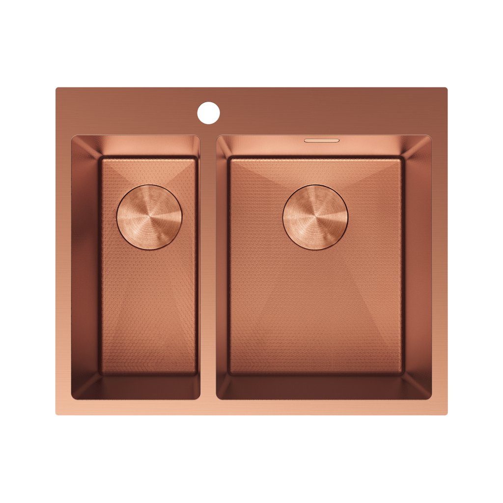 Mexen Flexo, 1.5-komorový nerezový drez 610 x 510 mm, brúsená meď, vzor voština, 6446611500-65HC