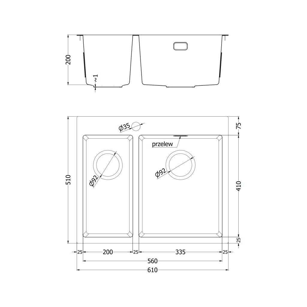 - Rozmery komôr: 410 × 335 mm (väčšia), 410 × 200 mm (menšia)