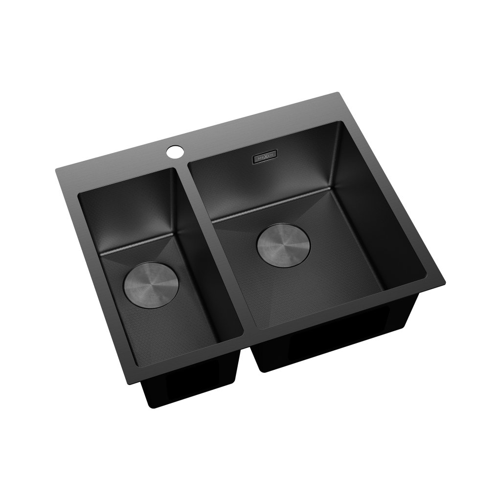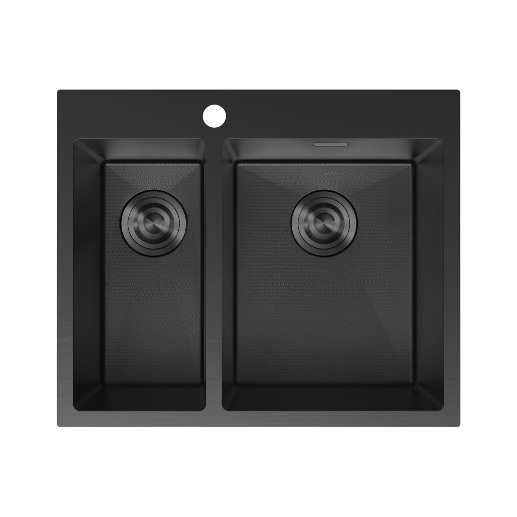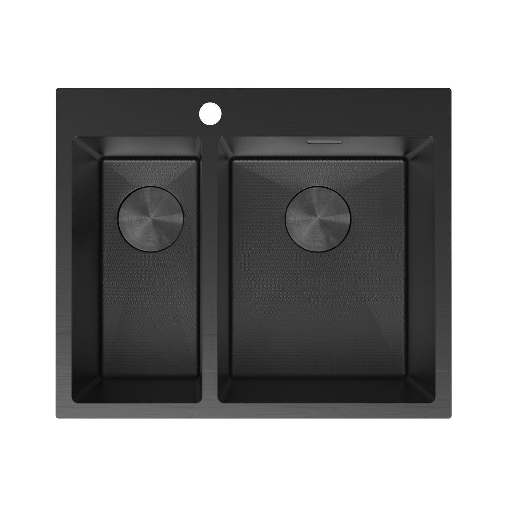 Mexen Flexo, 1.5-komorový nerezový drez 610 x 510 mm, čierna, vzor voština, 6446611500-70HC