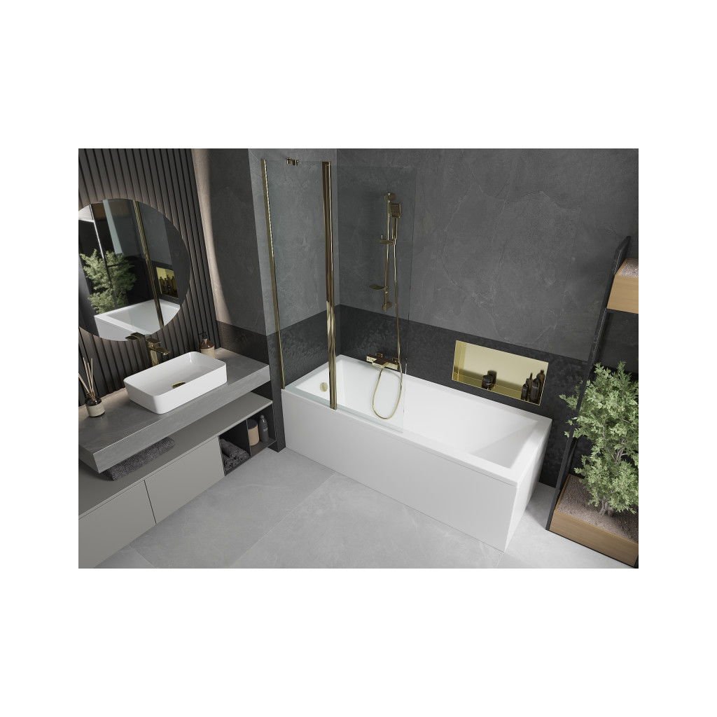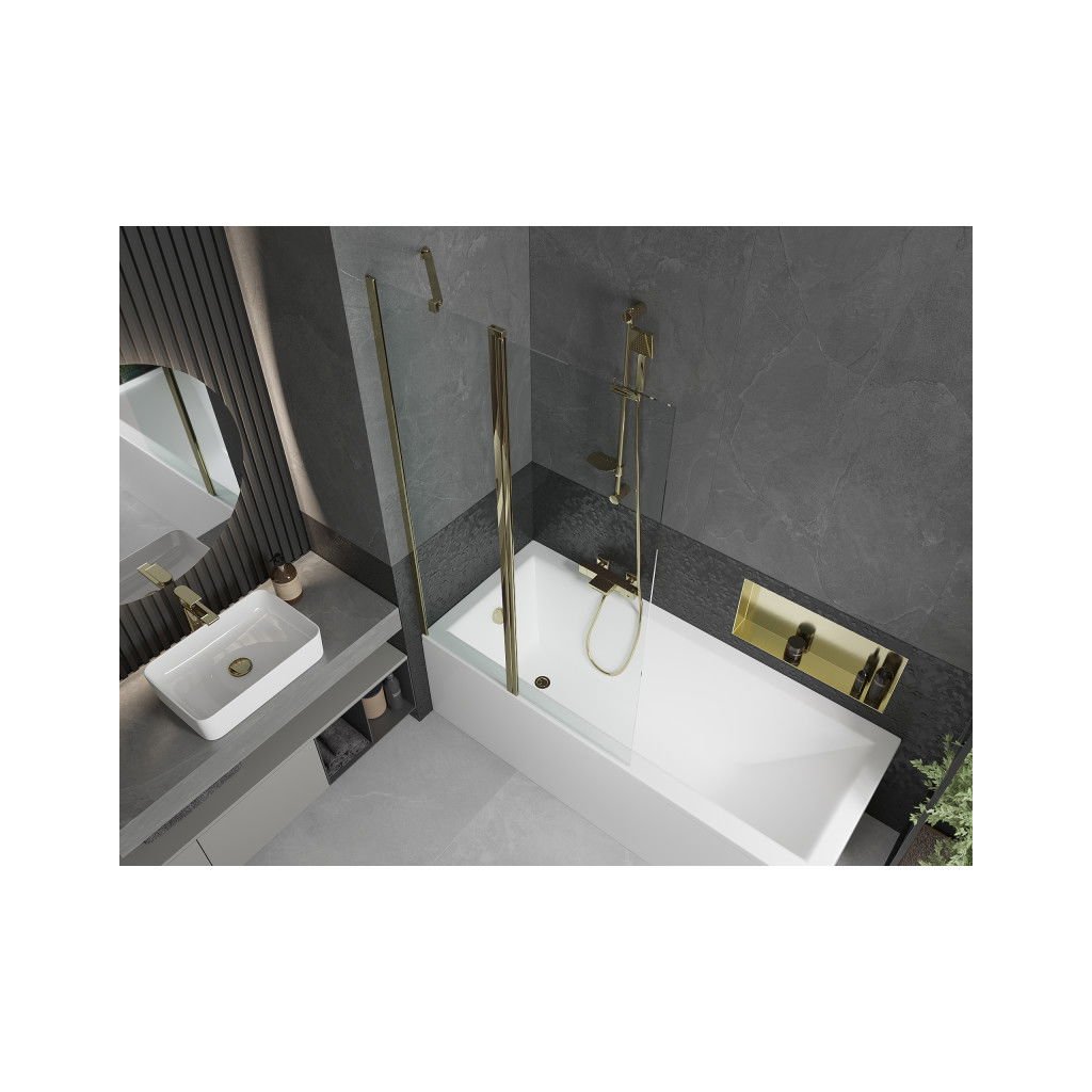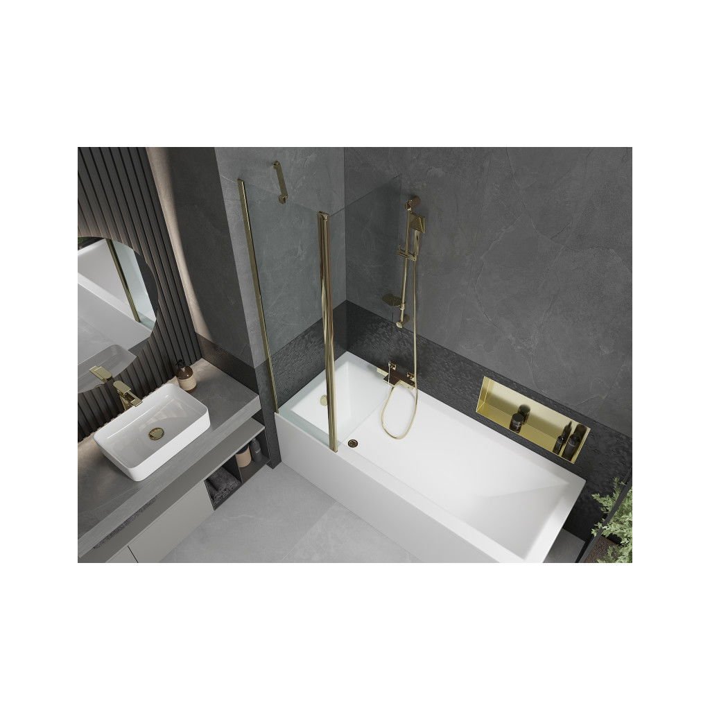 Mexen Flip, vaňová zástena 1-krídlová 100 x 150 cm, otočné krídlo, 6 mm číre sklo, zlatý profil, 894-100-101-50-00