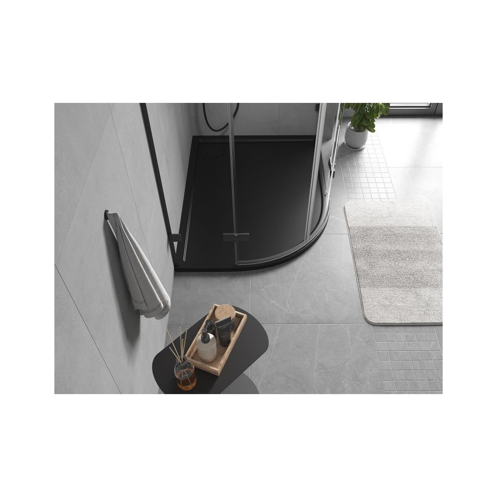 Mexen Flow, asymetrická štvrťkruhová sprchová vanička slim, pravá 100 x 80 cm, čierna matná, 46Q708010R