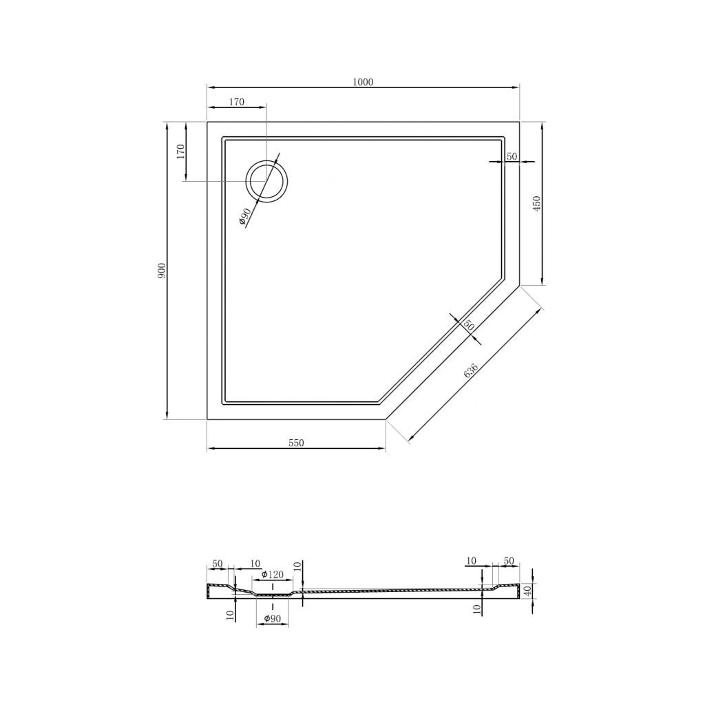Mexen Flow, päťuholníková sprchová vanička slim 100 x 90 cm, ľavá, čierna matná - 46P709010L