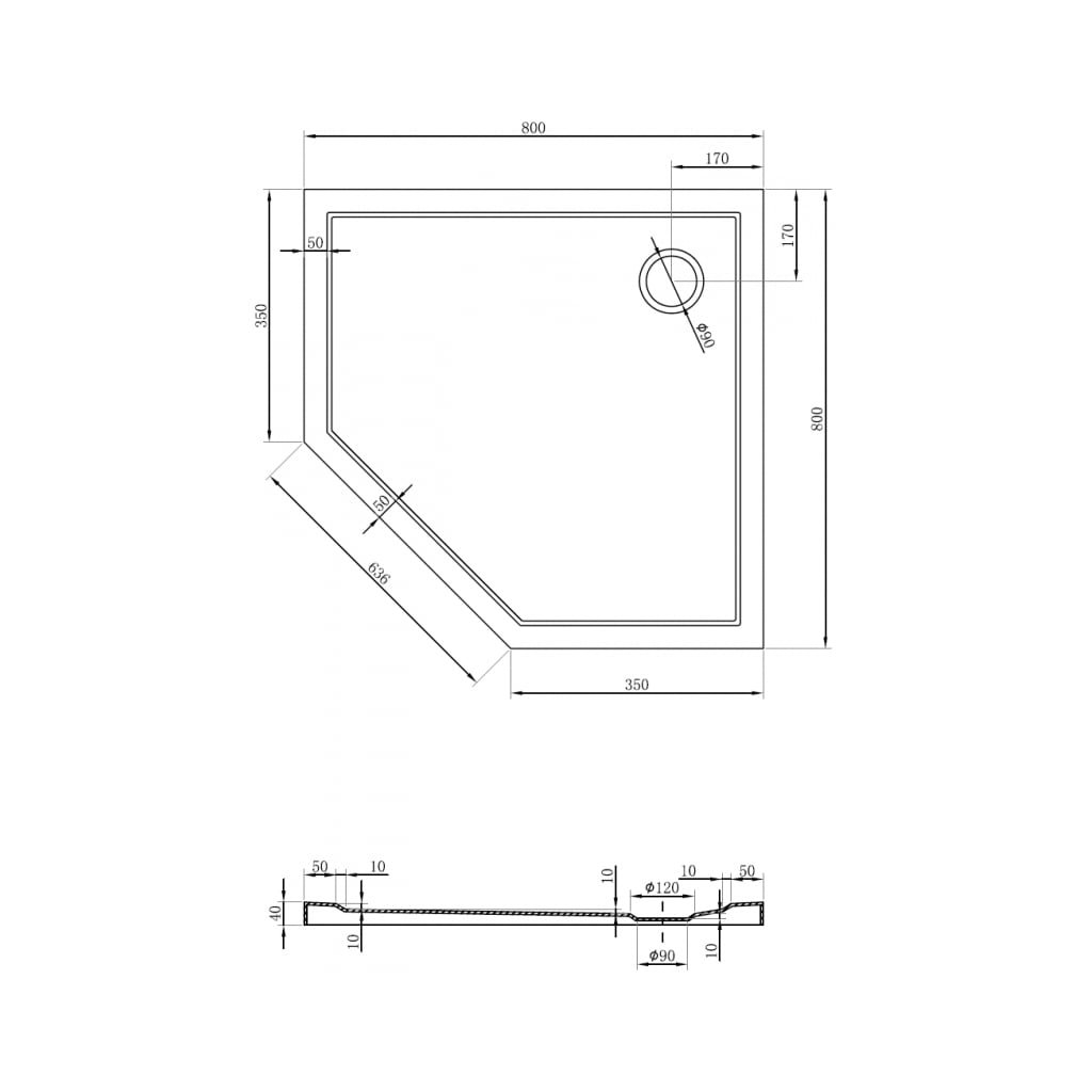 Mexen Flow, päťuholníková sprchová vanička slim 80 x 80 cm, čierna matná, 46P708080
